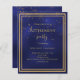 Celebrate the special milestone with this elegant retirement party invitation. Featuring a rich navy blue background with an uneven texture, this design is highlighted by golden frames and sparkling golden confetti sprinkles. The golden-coloured lettering adds a touch of sophistication, making it perfect for the occasion. Personalize it by adding the retiree's name and all your party details to create a truly unique invitation. Available in various paper types and formats, this invitation sets the tone for a memorable celebration.