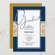 Navy Blue Gold Damask Graduation Invitation