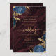 Navy Blue Gold Floral Burgundy QR Code Wedding Invitation