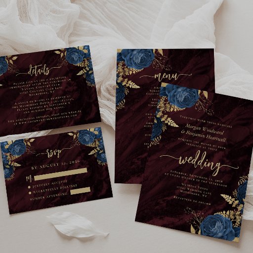 Navy Blue Gold Floral Burgundy Wedding SuiteDesigned by Akhates Designs
