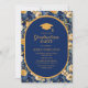 Navy Blue Gold Floral High School Graduation Cap Invitation