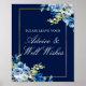 Navy Blue Gold Floral Wedding Advice & Well Wishes Poster