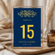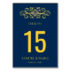Navy Blue Gold Flourish Wedding Table Number