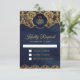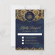 Navy Blue Gold Foil Lace Islamic Wedding RSVP Card
