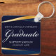 This elegant navy blue and gold graduation keychain features modern geometric lines above your formal text. The classy white script details your graduate school and class information. This upscale keepsake gift is perfect for a 2025 college or university grad.