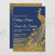 Navy Blue & Gold Glitter Peacock Wedding Invite