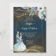 Navy blue gold glitter wedding reception invitation template instant download. Dancing couple, dusty blue flowers, fairy lights.