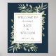 Navy Blue Gold Greenery Wedding Welcome Sign