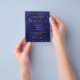A navy blue background decorated with golden hearts. The blue colour is uneven. Personalize and add your names and the details.