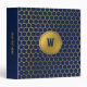 Navy Blue Gold Hexagon Pattern Monogrammed Initial Binder