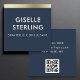 A sophisticated square business card featuring a rich navy blue background, gold foil accent, and minimalist typography. Designed for professionals who appreciate timeless elegance and seamless digital interaction with an integrated QR code.