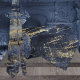 A navy blue watercolor painting with gold brushstrokes and elements that create a sophisticated modern art style wedding neck tie.