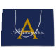 Navy Blue Gold Modern Script Girly Monogram Name Large Gift Bag