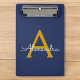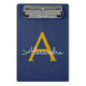 Navy Blue Gold Modern Script Girly Monogram Name Mini Clipboard
