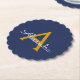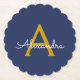 Navy Blue Gold Modern Script Girly Monogram Name Paper Coaster