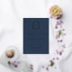 This classic, elegant graduation party invitation design features a real gold foil monogram initial in serif font encircled by a gold line art acanthus crest on a navy blue background. Personalize the gold foil text with the graduate's name and the party details. The back of the card is solid navy blue. Ideal for a high school, college or university graduate.