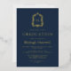 Navy Blue Gold Monogram Crest Graduation Party