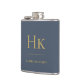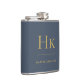 Navy Blue Gold Monogram Elegant Personalized Hip Flask