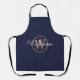 Modern stylish navy blue and gold script name monogram apron. You can personalize the name and monogram initial to create your own unique design. Designed by Thisisnotme©