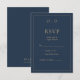 Elegant navy blue and gold wedding RSVP card featuring a classic monogram design. Created for couples who want a refined, formal look that complements luxury wedding stationery. Ideal for traditional, modern, or formal weddings. Perfect for coordinating with navy and gold wedding invitations. Editable text with a clean, print-ready layout.