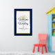 Customize this navy blue and gold "Welcome to our Wedding" sign with your own special touch. This modern design features modern script, navy blue and gold text including the bride and groom's names and wedding date, an artistic palm tree and metallic gold foil frame with a navy blue border. If you need help or matching items, please contact me.