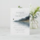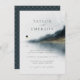 Start planning for your special day with these elegant invitations. This design features a watercolor painting of a lake and pine tree landscape with classic script typography. Cards reverse to a faux gold geometric pattern against a navy blue background.