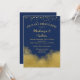 An elegant navy blue and gold wedding rehearsal dinner invitation featuring gold glitter confetti dust and gold bling at the bottom.