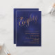 A modern, stylish invitation for a 80th birthday party. A navy blue, uneven coloured background and the word Eighty written with elegant large script letters in faux gold. Personalize and add a name and party details.