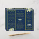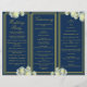 Navy Blue Gold Script Rose Trifold Wedding Program