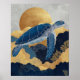 Navy Blue& Gold Sea Turtle Kintsugi Underwater Poster