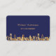A navy blue background, with a faux gold city skyline as decor. Personalize and add your name and a text on front. Golden letters