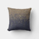 Navy Blue Gold Sparkly Glitter Ombre Throw Pillow