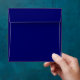 Navy blue and gold square envelope.