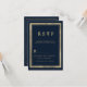 A vintage navy blue and gold theme typewriter with gold font typography rustic style wedding RSVP invitations.Is perfect for any refined and sophisticated girl or anyone. This design is ideal for a trendy and elegant party event. Customize this design with your message and personalized information. All designs are printed.