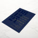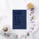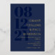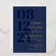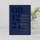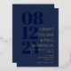 Elegant typography wedding invitation in dark blue with your wedding date in large navy blue numbers down the side of the invitation. Add names and wedding wording in gold foil. Gold foil and dark blue wedding invitation with your names in a large font.