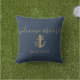 Navy Blue Gold Welcome Aboard Boat Name Outdoor Pillow