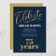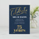 Navy Blue Gold White 75th Birthday Party Invitation