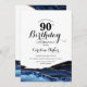 Navy Blue Gold White Agate 90th Birthday Invitation