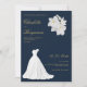 Elegant navy blue, gold, and white lace wedding dress floral wedding invitations. This stylish navy blue gold floral invitation is perfect for any classy and glam chic girl. This design is ideal for a trendy and sleek party event. Customize this design with your message and personalized information. All designs are printed