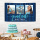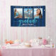 Announce to the world that your favourite grad has reached their milestone with this stunning, simple, modern, girly personalized 3 photo banner. Sparkly turquoise glitter script typography overlays a navy blue striped background. Add 3 photos of your choice and personalize the custom text with your graduate’s name, school name and class year. Choose from indoor or outdoor options. Matching invites, thank you cards, cap toppers, fans, napkins, plates and other graduation goodies are also available in this trendy and stylish collection. Guaranteed to preserve cherished memories of their special occasion!
