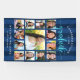 Announce to the world that your favourite grad has reached their milestone with this girly, stunning, simple, modern, personalized high school graduation K – 12 photo collage keepsake banner. A fun, elegant visual of turquoise blue glitter script typography, along with her name, class year, and 13 photos of your choice overlay a navy blue striped background. Personalize the custom text with your grad’s name and class year. Choose from indoor or outdoor options. Guaranteed to preserve cherished memories of their special occasion!