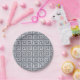 Custom designed paper plates with a navy blue Greek key pattern. Add text and images by clicking the "Customize It" button below the product image.