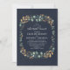 Navy blue, green and gold vintage greenery wreath rehearsal dinner invitations