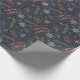 Green foliage and white snowflakes on a navy blue background. Perfect for Christmas gifts wrapping.
