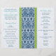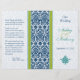 The text on this navy blue, spring green, and teal damask wedding program is fully customizable. It is intended to be folded down the middle. To change the text, use the personalize option. For more extensive changes, such as changes to the font, font colour, font size, or text layout, use the customize it option. Once your text is finalized, if you need to move it around a bit, you can do that using the customize it option. This damask special occasion program is currently customized as a wedding program, but it would work well as a program for other special occasions as well. Really, this would even make a really nice church bulletin with changes to the text. Let your imagination lead you.