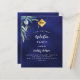 Navy blue greenery budget graduation invitation