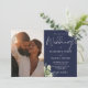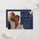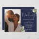 Navy Blue Greenery Floral QR Code Photo Wedding Invitation