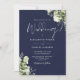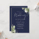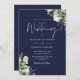 Navy Blue Greenery Floral QR Code Wedding Invitation