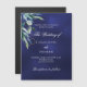 Navy blue greenery luxury wedding magnetic invitation