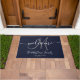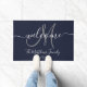 Navy Blue Grey Monogram Script Newlweds Wedding Doormat